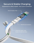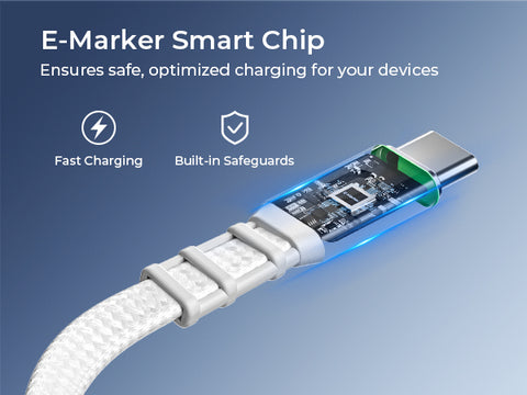 This USB-C fast charging cable incorporates a USB-IF certified E-Marker chip that dynamically communicates its power delivery capabilities. This enables compatible chargers and devices to determine safe power delivery—preventing overload risks. Technical Note: The E-Marker chip only declares cable capability. Actual power output is determined by your charger and device's PD protocol support.