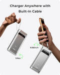 Forget the cable clutter. The integrated 22cm USB-C cable supports 100W Bi-Directional charging (handles both input and output) and features a reinforced design to serve as a sturdy lanyard/handle. Weighing just 280g (0.6 lbs), it offers the ultimate "Grab-and-Go" experience for travelers and commuters.