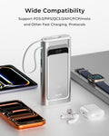 Unlock true high-speed charging in a compact form. Unlike standard 10000mAh banks, this beast delivers up to 100W output, capable of rapidly powering up MacBook Pro, Air, and other USB-C laptops. It charges your iPhone 16 Pro Max to 55% in just 30 minutes, ensuring you stay powered during critical business trips or gaming sessions.