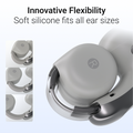 Soft silicone fits all ear sizes and distributes pressure evenly.