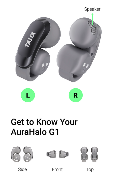 Ultimate All-Day Comfort: AuraHalo G1 features an adaptive open-ear clip design that fits all ear shapes. letting you enjoy music and calls comfortably for hours.